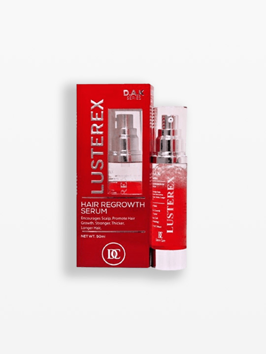 Lusterex Hair Regrowth Serum 50ml is an advanced formula designed to reduce hair fall, stimulate hair follicles, and promote healthy hair regrowth for stronger, thicker, and fuller hair.